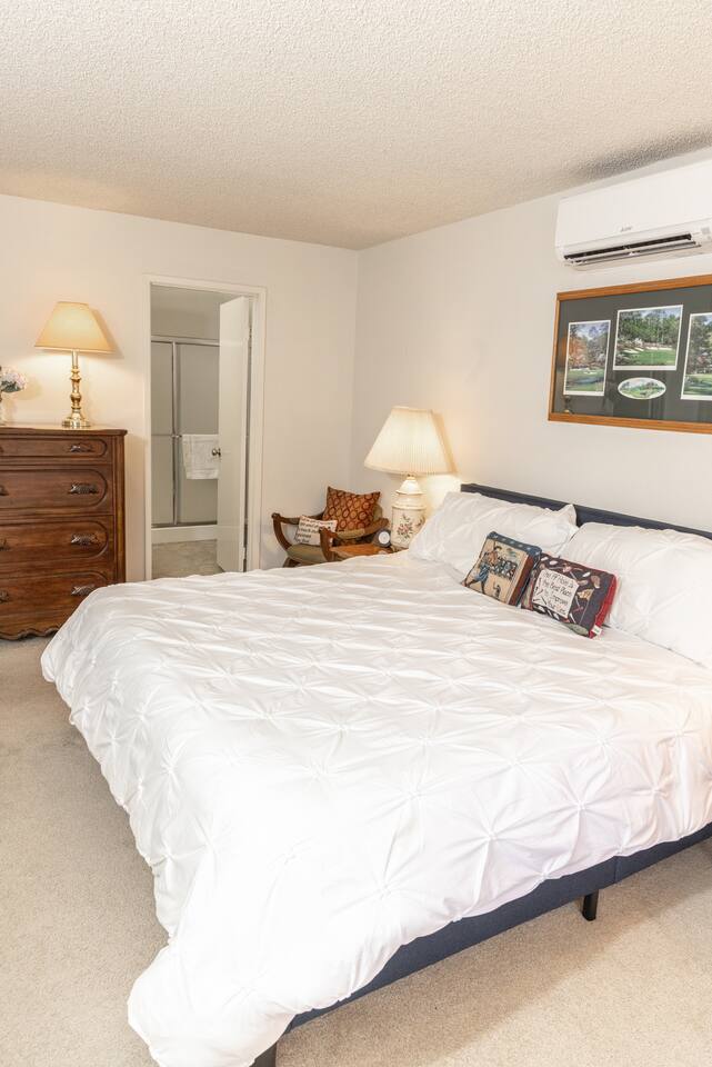 As new hosts, we are excited to host your next get away! Welcome to our mountain townhome located on a picturesque golf course in the charming town of Graeagle, California. Our vacation rental is perfect for groups looking to stay in the Sierra Mountains. Our place offers: - 4 Br/3 bath 2000sf, 2 primary rooms with ensuite bathrooms, Upstairs w/ Cal King bed & private deck, downstairs w/ Tempur-pedic King bed - Updated kitchen w/ quartz counter tops - EV Charger - New heat & A/C, and fireplace